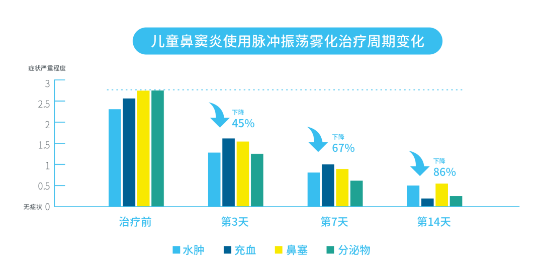 使用脈沖振蕩霧化,治療周期較普通鼻噴劑縮短50%,等于讓患者暴露在藥物下的周期也大大縮短。