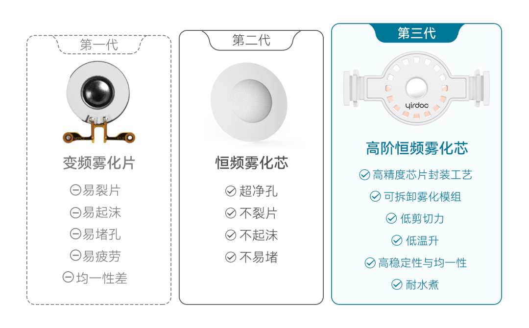 不同制劑有著獨(dú)特的物理屬性,針對不同的粘度、濃度、表面張力等屬性,需要不同的霧化片來適配。此外,不同的適應(yīng)癥,其靶向沉積位置也各不相同(例如PAH/IPF需要靶向深肺沉積)。面對這些差異化需求,“通用市售霧化器”在均一性等方面表現(xiàn)不佳,難以實(shí)現(xiàn)高性能霧化,無法滿足臨床階段高質(zhì)量要求。因此,歐美學(xué)界、工業(yè)界和監(jiān)管部門均推崇“一個(gè)配方需要一個(gè)定制專屬霧化器”原則(“one formulation,one customized nebulizer”)。近年來,這一原則也得到了國內(nèi)相關(guān)企業(yè)的認(rèn)可和實(shí)踐,成為了業(yè)界主流觀點(diǎn)。