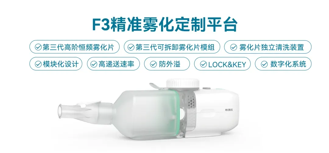 布咳樂F3高遞送霧化定制平臺,在PARI eFlow等國際平臺標(biāo)準(zhǔn)上,全方位實(shí)現(xiàn)國產(chǎn)替代和高端霧化產(chǎn)業(yè)升級,目前已經(jīng)助力吸入抗生素、吸入小核酸藥物(siRNA、ASO 等)、吸入mRNA-LNP、吸入抗體、吸入外泌體等吸入藥械組合產(chǎn)品的定制開發(fā)和臨床開發(fā)。