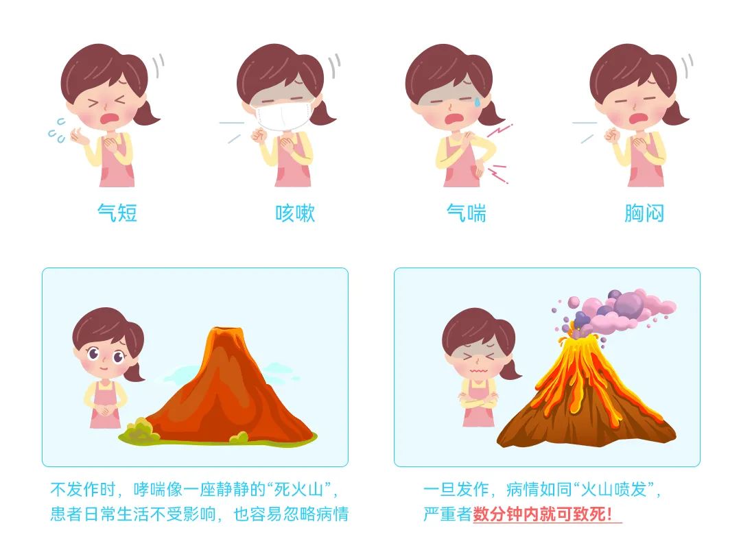 因為哮喘不發(fā)作時,患者幾乎不會表現(xiàn)出癥狀,這使得很多人對它掉以輕心。實際上,哮喘嚴重時可能造成肺部感染、多臟器功能衰竭,甚至是猝死。