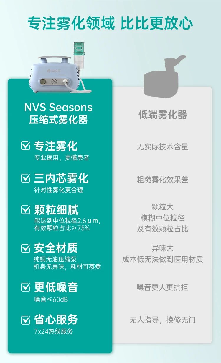 而且布咳樂NVS壓縮霧化機操作簡單,清洗方便,采用純銅無油壓縮泵,霧化機使用壽命長,無需特別維護,是全家可用的放心機器。